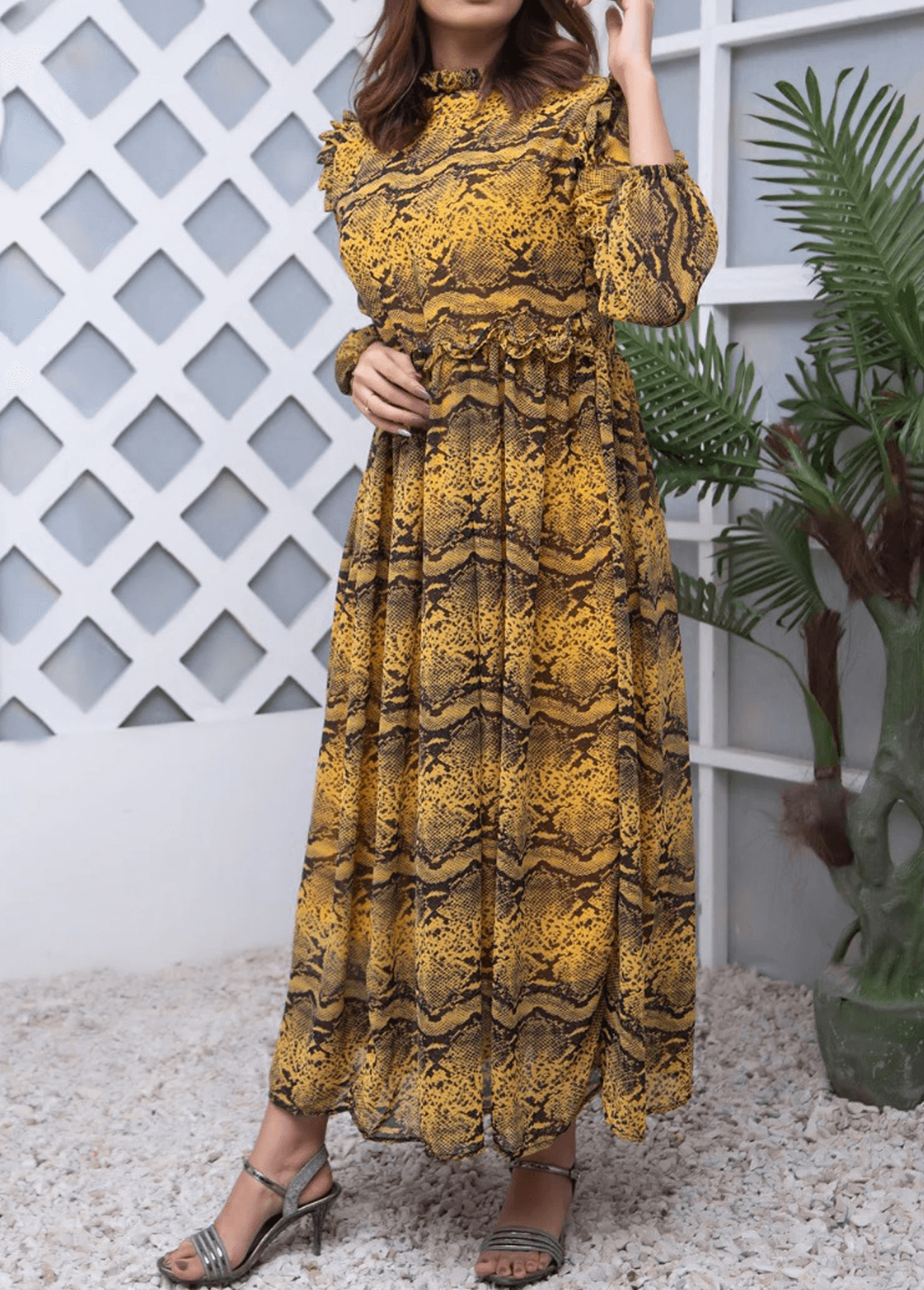 2Pec Readymade Printed Chiffon Long Maxi With Tights – Pret-Stitched