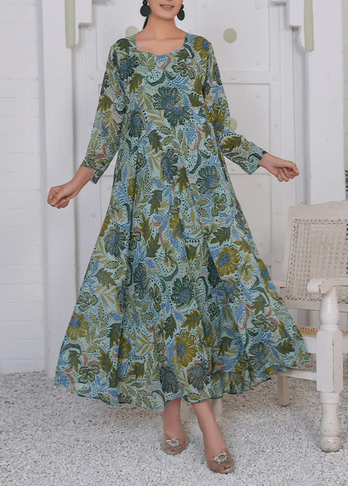 2Pec Readymade Printed Chiffon Long Maxi With Tights – Pret-Stitched