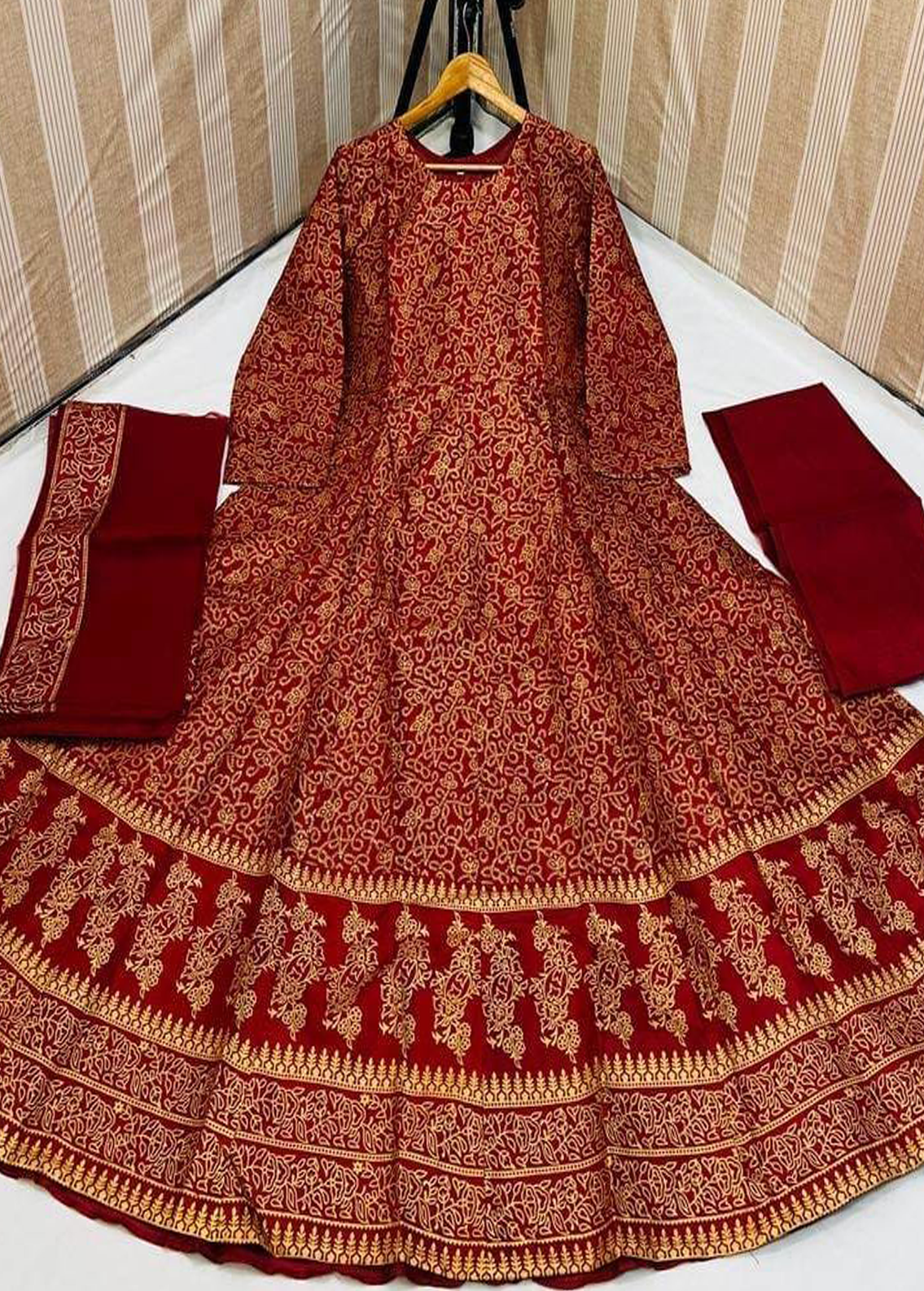 Readymade 3Pc Printed Fancy Silk Maxi Pret-Stitched-Ready-to-wear