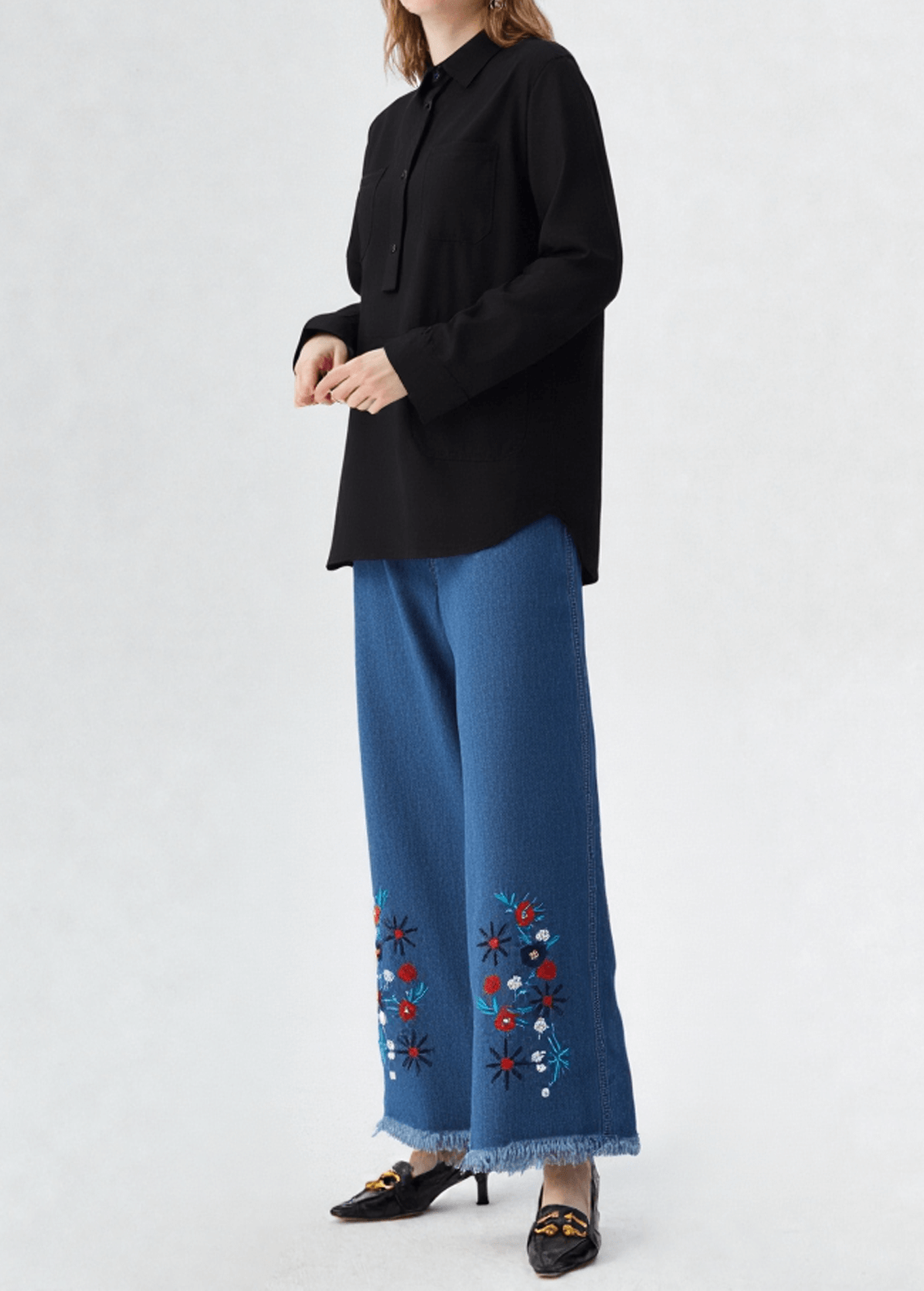 Trendy Wide-Leg Jeans for Women – Blue Denim jeans for girls with Elegant Embroidery